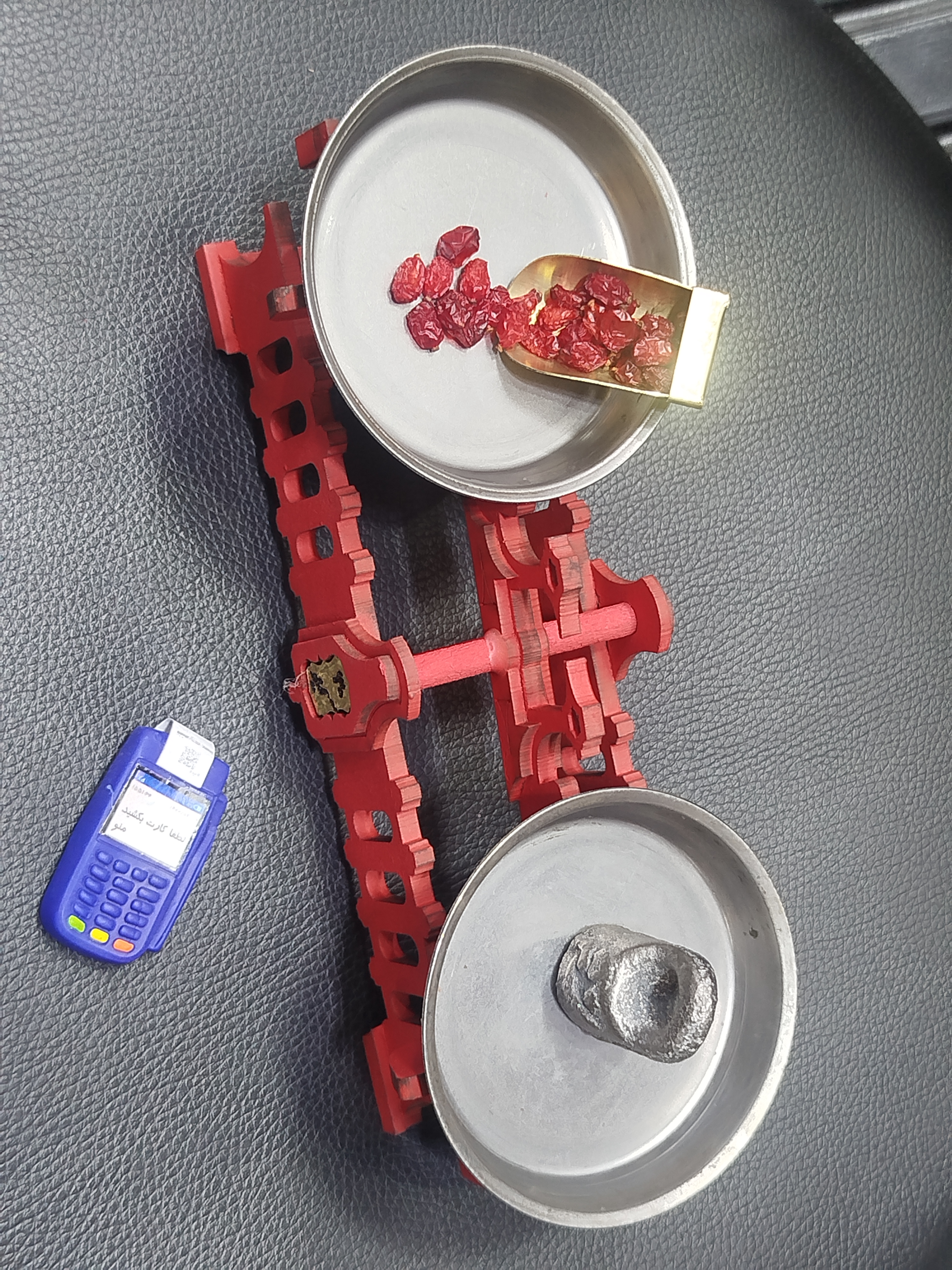 ترازو قدیمی با سنگ و تاسی