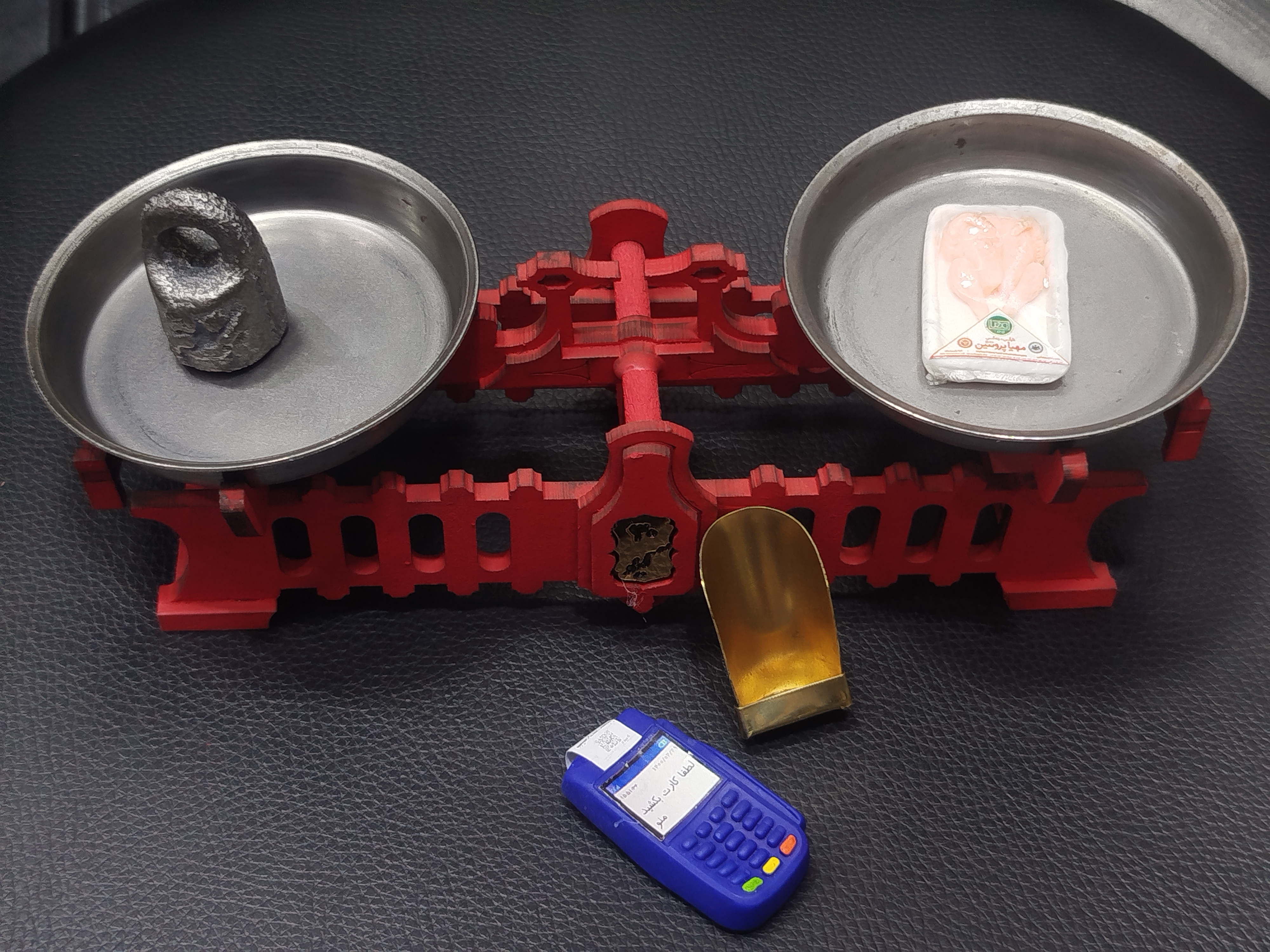 کفه و تاسی و سنگ فلزی